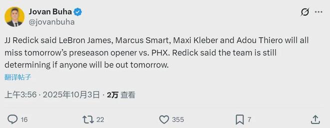 10月3日,北京时间,湖人正式宣布,詹姆斯(髋关节),Smart(Achilles肌腱炎),Cleber(Quadrieceps)和Adu Tiero(膝盖)将错过太阳的季前赛。杰伦·格林(Jaylen Green)有轻柔的腿筋菌株,无法击败。克莱伯(Cleber)三天前说,他已经恢复了100%的健康状况,但现在他再次受伤。一些粉丝以前令人惊讶:我们应该翻译成Kleber还是Kleber?像伦纳德(Leonard)和伦纳德(Leonard)一样,他们有不同的个人翻译习惯。只要您知道他们都是人。克拉勒患有股四头肌菌株。他不仅在明天对太阳队的比赛中错过了比赛,而且他在10月6日与勇士队也无法与勇士队比赛。克莱伯的合同为3300万美元,持续了三年,并于2026年到期,他的年薪为1100万美元。在这个休赛期,湖人希望Palkennett和Cleber参加。尽管克莱伯(Claiber)有一份到期的合同,但没有团队愿意聘请。一方面,他没有能力,在另一方面,他受到了很大的伤害。他应该做什么?湖人队的球迷总是在开玩笑:克莱伯(Kleber)是平均每场2分的三分射手!今年2月,湖人队给了小牛,并在2029年提供了浓密的浏览器,克里斯蒂(Christie)和第一个选秀权,以换取Doncic,Morris Big和Clailers。当时,一些球迷问:为什么湖人喜欢克莱伯?这不是湖人想要的,但小牛应该做他!克莱伯的合同是负面的所有者。如果湖人想获得唐西奇,他们只能占领克莱伯。上个赛季,克莱伯(Kleber)的右脚骨折,与小牛队进行了34场常规赛。 NAG -AHE每场比赛18.7分钟,得分3分,2.8个篮板,1.3帮助,0.5个盖帽和0.7个失误,投篮命中率为3%:38.5%,26.5%和76.2%。加入湖人队后,克莱伯(Kleber)从伤病中康复,没有参加常规天气比赛。他在季后赛中打了1场比赛,打了5分钟,1杆中的0次,2 f,2 f。REE投掷,得分2分,0个篮板和0次助攻。看到这一点后,您将知道为什么湖人无法摆脱克莱伯。您认为克莱伯仍然有机会与湖人队比赛吗?