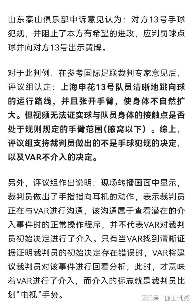 在足球协会和FIFA之间的后卫反应中,中国超级联赛比赛的争议罚款完全减少为Rashomon。在比赛结束前12天,山东·陶尚(Shandong Taishan)与上海申豪(Shenhua)的比赛之后,中国足球协会拒绝了塔桑(Taishan)的上诉,基于“确定国际足联的专家的意见”,并且确定马纳法(Manafa)的盖帽并没有形成手球犯规。但是,这个看似最终的结论不仅是疑问,而且还因为“视频无法确认接触点”的说法将争议推向了一个新的高峰。争议的核心总是围绕两个问题:为什么视频证据不正确?为什么裁判在交流中安静?在比赛的第6分钟,刘阳的十字架显然击中了M的Armanafa区域。广播相机清楚地捕获了这一场景以及Maitijiang和Var之间的通信过程裁判Gu Chunhan被记录了一分钟以上。屏幕显然还标有“视频裁判检查球和点球踢”。但是,足球组织的评论说“ VAR不干预”,并将沟通定义为“正常操作方法”。在广播屏幕上的这种直接矛盾长期以来一直在公开充满疑问。更令人惊讶的是足球与国际足联组织之间的互动逻辑。中国足球协会表示,不可能判断处罚,需要从国际足联寻求意见,最后根据后者的专家观点做出决定。但是,FIFA的主要原因是“视频无法确认球与球员的身体之间的接触点是否在规则定义的手臂范围(腋下)范围内。Al不确认关键联系点是决定的基础? ARM,将视频的质量提交给足球协会的FIFA?英超联赛,意甲和其他联盟长期以来已经发展了公共技能。在这场战斗中,已交换了超过一分钟的Maimatijiang和Gu Chunhan是Gu Chunhan提出的“证据不足”,还是两人跳过重播以达成共识?是否对“低于腋下”的政策有另一种解释,还是还有另一个未知的考虑因素?这些问题的答案隐藏在未指定的声音中。更适当的关注是,这一争议不是孤立的情况。迈·梅蒂安格(Mai Maitijiang)和古尚汉(Gu Chunhan)这次在塔桑(Taishan)比赛中有争议的争议,足球协会仍然组织了两者来执行法律关键之战。此外,类似手球场景的先前判断标准是不同的 - 都在物理上互动有了球,法比奥的进球被取消了达希尔(Dahil)手球,但马那法(Manafa)免于责任 - 公众对“双重罚款的双重标准”的怀疑变得强大。在这种情况下,公众声音的记录不仅需要响应单一争端,而且是重建裁判的信誉的关键步骤。足球协会认可了“ FIFA专家意见”的处罚,但避免了无效的视频证据的耻辱; “ VAR不干预”的含义用于避免公众,但不敢揭示自我增强的声音。 “不变”的四个FIFA单词类似于提供充满疑问的省略号的争议。当广播屏幕和官方结论与之矛盾时。当视频证据无法支持该决定时,裁判的声音在幕后隐藏了SA可能是解锁Rashomon的最后关键。现在的问题是,中国足球协会将努力赋予这一钥匙吗? (照片ND视频来自互联网画廊。如果有任何违规行为,请与我们联系以将其删除)